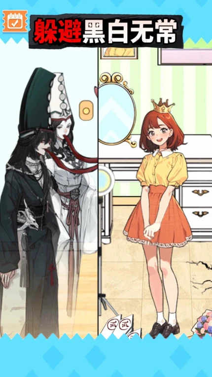 蓝天下载网为您免费提供逃离黑白无常手游下载。这款以黑白无常为主题的闯关游戏,通过寻找隐藏物品与巧妙躲避机制,为玩家营造惊悚刺激的逃亡体验。游戏内含古风装扮系统与多元素关卡设计,结合观察细节与策略制定,让每次挑战都充满未知变数。玩家需在恐怖场景与搞笑场面间保持警惕,通过反复尝试解锁更高难度关卡,感受独特玩法带来的沉浸式乐趣。