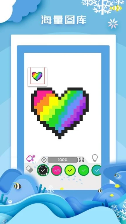 独创的色块吸附技术确保笔触精准,误填区域可一键撤销。支持画笔粗细五档调节,0.5-3像素笔尖适配不同精细度需求。智能边缘检测功能自动识别填色边界,避免越界操作。