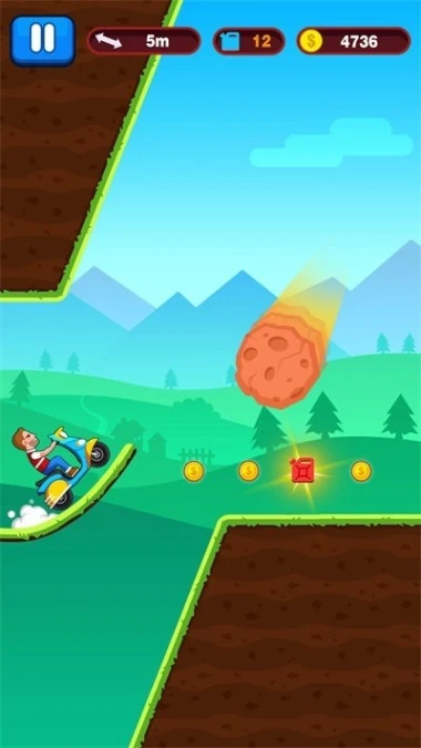 1.直面障碍物时需果断选择突破路径,按住屏幕左右区域控制摩托偏移角度。