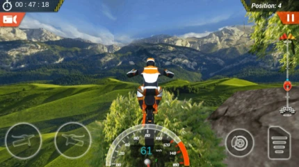破解版解锁全部金币与赛车库,玩家可自由升级引擎、轮胎等部件,定制个性化摩托车外观与性能参数。