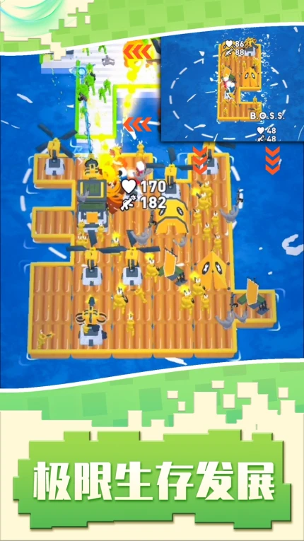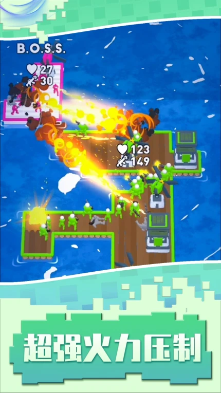4.BOSS数量增加,敌人会乘木筏来犯,BOSS数量增多,挑战升级。