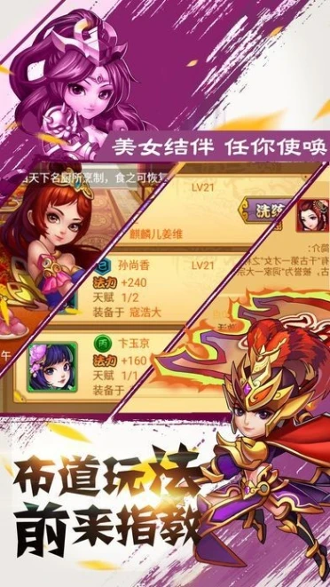 3.武将搭配关键,汇集大量武将角色,及时选定最佳搭配方案可提升队伍力量。
