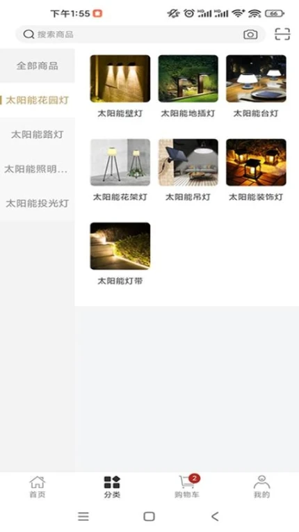 2、根据商品分类,随意选择不同类型的太阳能商品。