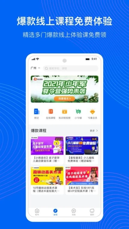 1.在线报名:用户可通过应用在线报名各个课程,让孩子加入学习。