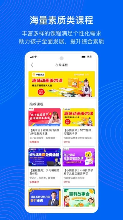 2.课程丰富:提供大量优质课程,涵盖多种领域,满足孩子不同兴趣和学习需求。