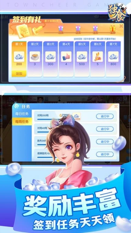 1. 自由挑战:同花顺子等牌型比拼,手气与策略双重要求,每局皆有新冒险。2.任务奖励:每日签到解锁多重礼包,任务完成即享福利,资源获取零门槛。3.竞技模式:一打三或二打二随机触发,牌技较量直观呈现,胜负悬念贯穿全程。4.界面设计:卡通风格搭配流畅操作,视觉舒适度与交互效率同步提升。5.任务系统:多样化任务自由解锁,奖励机制丰富,长期留存动力充足。