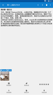 Diarium是一款很不错的手机个人日记记录软件,可以帮助用户随时随地记录日常生活中的点滴与感悟。在Diarium安卓版中,用户可以轻松撰写每日日记,支持富文本编辑,不仅限于文字输入,还允许在日记中添加照片、视频等多种媒体形式,生动还原每一个珍贵瞬间。附件站提供diarium官网下载,喜欢写日记的小伙伴们快来下载体验吧。