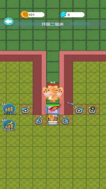 4、床铺等级决定防御半径,建议优先升级至3级解锁群体攻击技能。金币需合理分配至机关与技能。