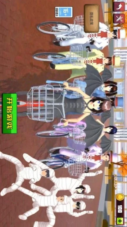 游戏中女孩会扮演有趣角色,如裹着纱布的病人,营造出欢乐搞怪的游戏氛围。