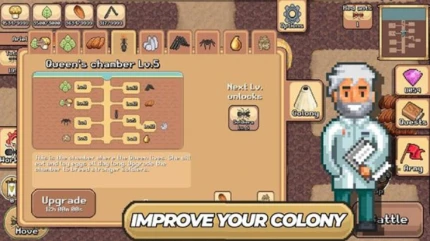 蓝天下载网为您免费提供口袋蚂蚁模拟器下载,这是一款模拟手游,也是角色扮演类游戏。游戏采用了玩家熟悉的像素风格,画面和场景精致,搭配舒适的背景音乐,带来全新体验。游戏中增加了多种蚂蚁类型,如工蚁、士兵蚂蚁等,玩家可建造蚂蚁帝国,解锁超大场景,自由冒险战斗,保卫家园。