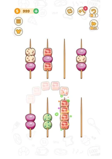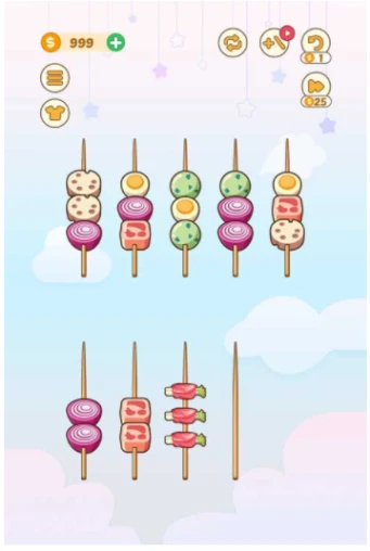 蓝天下载网为您免费提供BBQ排序拼图下载,这是一款极具娱乐性的闯关游戏,属于休闲益智类。游戏采用清新舒适的画面风格,玩法令人上瘾。玩家需将竹签上的食材分类,当所有食材都在同一竹签上即为胜利。游戏还有众多关卡可供解锁,玩家可随意排列食材展开挑战,每次移动都需认真思考。该游戏对玩家的逻辑性有一定考验,感兴趣的玩家不要错过,随时可下载畅玩。