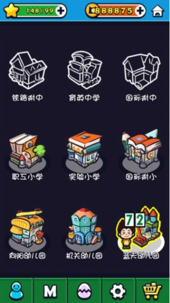 3、不同学校档次有不同要求,玩家答对题目获积分和金币,可解锁更多玩法。