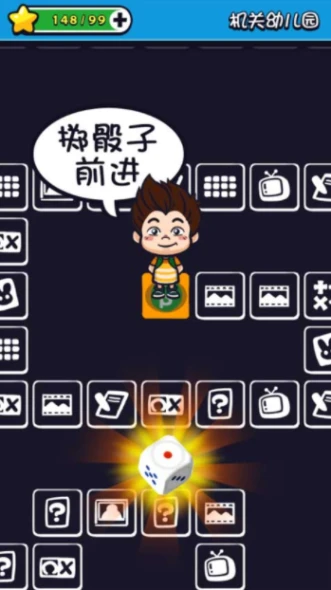 1、玩家掷骰子前进时会遇到随机事件,可能是萌妹子求助,也可能与胖虎决战,依靠答题解决。