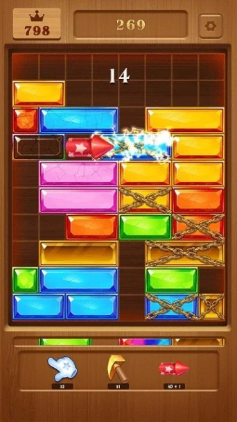 蓝天下载网为您免费提供方块宝石滑消消下载。这款游戏以滑动匹配为核心玩法,通过木质背景与彩色滑块的组合,打造沉浸式消除体验。玩家需观察方块布局,灵活运用滑动方向突破铁链封锁,逐步解锁待选砖块,同时避免触碰警戒线。随着关卡推进,金锤、导弹等道具将助你击碎障碍,8*10与10*10棋盘模式更带来差异化挑战,适合全年龄段玩家随时放松身心。