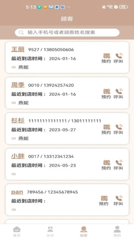 2、查看客户信息,依据最近到店时间联系客户。