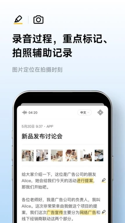 融合语音、文字、图片多维度记录,支持录音中插入截图或本地图片,实现图文同步归档。