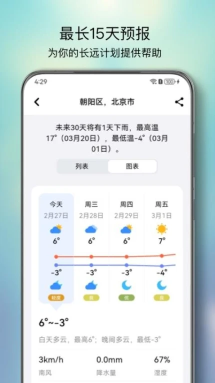 5.自然语言描述:采用自然语言描述天气信息,让用户更直白简单地了解天气情况。