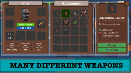 蓝天下载网为您免费提供赤壁幸存者在线游戏下载,这是一款集角色扮演与对战玩法于一身的精彩游戏。在游戏里,玩家能解锁不同战士角色,体验肉鸽对战的乐趣。每个战士实力各异,可通过培养模式升级,从而在赤壁之战中展现强大攻击能力。游戏中有众多敌人,攻击方式多样,玩家需解锁对应技能才能战胜对手。此外,还能提升等级改变生命上限,增强整体战斗力。快来开启这场赤壁之战的冒险吧!