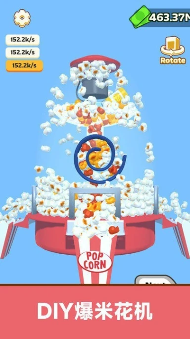甜品点击风暴是一款休闲类游戏,以制作爆米花为主要玩法。玩家通过点击操作控制爆米花机,放入玉米粒、糖等食材,启动机器后等待爆米花形成,再将其放入容器售卖。游戏中会呈现机器工作效率、爆米花数量等数据,升级机器可提升整体效率。玩家还能发挥创意,设计专属的爆米花机造型。此外,游戏里有适宜的机器工作时长,玩家可研制多种爆米花口味,如蜂蜜味、水果味、焦糖味等。还有多种包装纸盒可供选择,能看到店铺的收入状况,免费获取原材料,以及对机器进行检修和清洁等内容。同时,玩家可以给顾客提供其他食物搭配爆米花,提高店铺评价,让店铺越来越好。