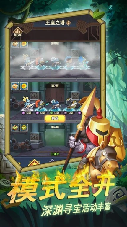 3、爬塔有王座之塔等四种模式,王座之塔每五层、十层难度不同程度提升。