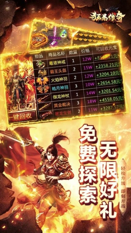 拥有超高爆装率,各种BOSS等玩家击杀,神器满地掉落,还可自由交易。