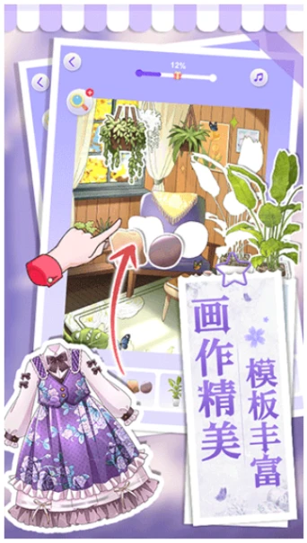 1、轻松贴图:通过创意贴纸与填色结合,简化绘画流程,降低创作门槛。玩家可自由选择模板,快速完成作品,缓解焦虑情绪。