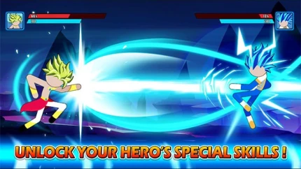 蓝天下载网为您免费提供火柴人悟空格斗下载,这是一款极具特色的动作冒险类打斗游戏。在游戏中,玩家能体验到以经典火柴人素材为原型,融入七龙珠赛亚人元素的创新玩法。高清绚丽的画面风格搭配横版动作打斗场景,让玩家收获更加爽快的对战冒险。游戏里有众多关卡等待玩家解锁,人物造型皆源自七龙珠,技能招式也高度还原,十分炫酷。玩家可以选择不同造型的人物上场厮杀,通过简单的操作释放强大技能,快速秒杀敌人。