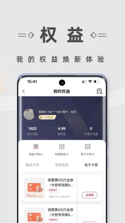 1.我的权益:管理已兑换权益,及时使用享受福利,提升消费体验。