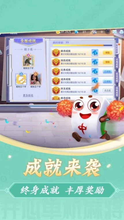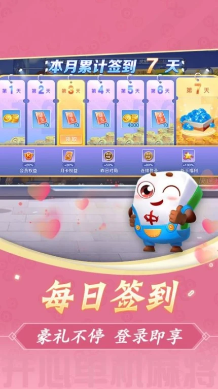 欢乐麻将(升级版)集合全国主流麻将玩法,包含大众国标、广东特色、二人麻将等多样化模式。游戏采用3D真人实时对战系统,支持新手至高级四档擂台挑战,结合节日礼包与成就奖励机制。操作界面简洁直观,番型特效增强竞技沉浸感,每日登录可领取金币与话费福利,打造公平竞技生态。