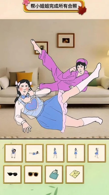 帮她完成挑战是一款休闲类闯关游戏,充满了趣味性和挑战性。游戏里设计了众多挑战内容,玩家要运用自己的智慧,助力小姐姐们达成各种挑战,比如拍照、变美等。每个关卡都有明确的要求,玩家只需依照要求完成目标即可。在寻找物品的过程中,玩家需要留意场景中出现的其他元素,像沙发、日历等,这些可能就是需要寻找的对象。游戏也会提供提示,但建议玩家尽量独立完成挑战,这样更有成就感。此外,游戏的剧情和内容丰富多样,每次挑战的要求都会有所变化,玩家需要不断观察内容的变化,才能顺利通关。