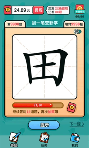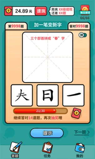蓝天下载网为您免费提供汉字高手下载,游戏采用创新的汉字重组机制,每关设置不同挑战目标。玩家需通过观察汉字结构,运用加一笔、移动偏旁等操作完成目标字形。内置海量汉字库与丰富题型,结合红包激励机制,实现寓教于乐的沉浸式学习体验。