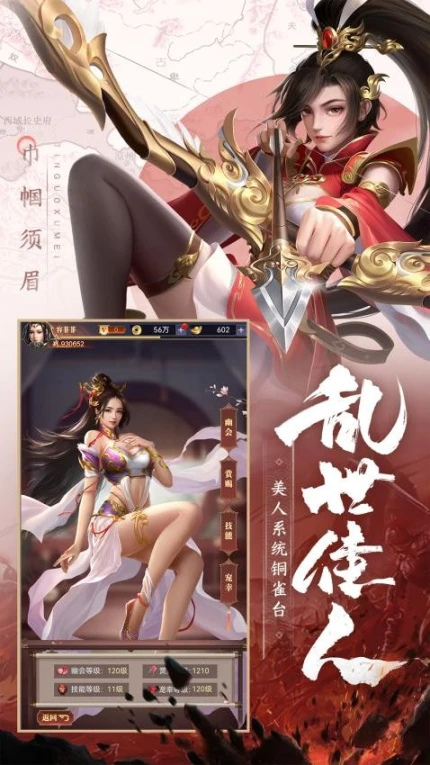 选择不同美人上阵,能带来不一样的属性加成,陪伴玩家在游戏中一统三国。
