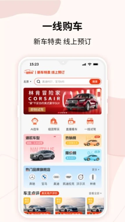 蓝天下载站为您免费提供一线购车免费版下载。这款生活实用类应用汇聚了奔驰、宝马、沃尔沃等大牌车型,支持用户通过图文、直播等形式全面了解车辆信息,一键预约试驾服务,享受足不出户的购车体验。应用内提供丰富的活动专题和车主真实评价,帮助用户高效筛选心仪座驾。当前最新版本v1.1.6已优化首页配置与系统性能,提升操作流畅度。