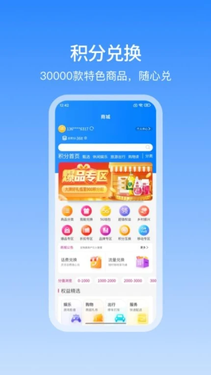 2.积分兑换:用户可用账号积分兑换各类商品,享受积分带来的福利。
