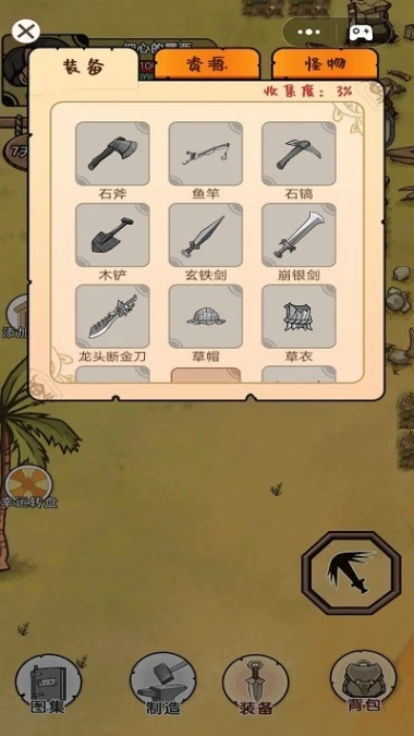 2.直接解锁鱼竿、石斧、木铲等基础工具,方便玩家初期开发资源,降低上手难度。