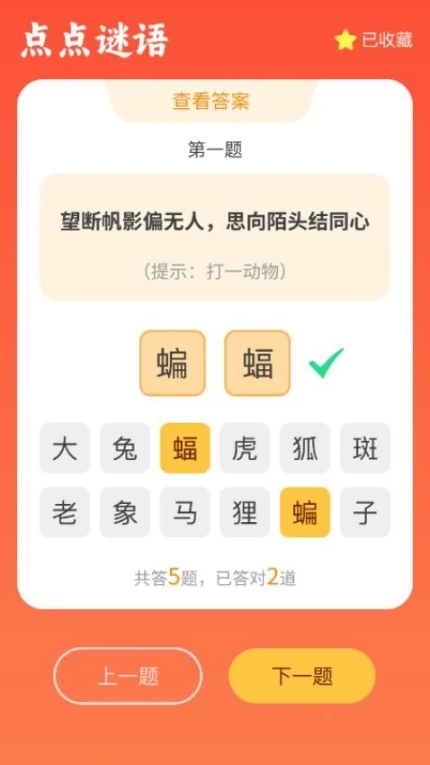 4、方便查看谜语答案,还能一键收藏感兴趣的谜语。