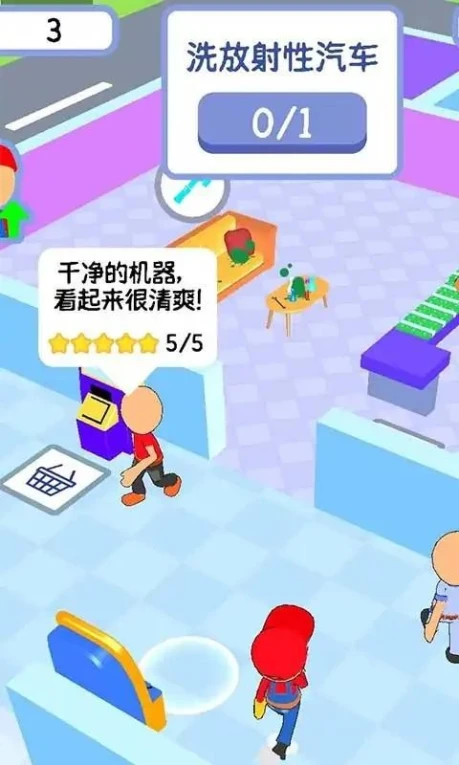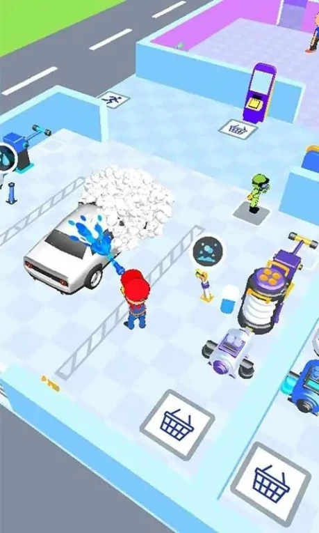 小小洗车工以洗车店日常运营为蓝本,玩家需应对每日接踵而至的顾客车辆。游戏提供高压水枪、清洗剂等专业工具,支持根据车辆污损程度(如普通泥渍、放射性物质附着)选择清洁方案。随着经营深入,可开设多工位清洗区、顾客休息区,并通过茶点服务提升满意度。系统化的设备商店允许玩家购买升级设施,同时需处理突发状况如危险液体防护,平衡效率与安全。