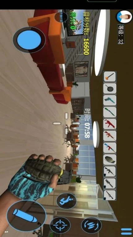 2.固定目标分数系统,击毁物品即得分,完成预设分数即可通关。