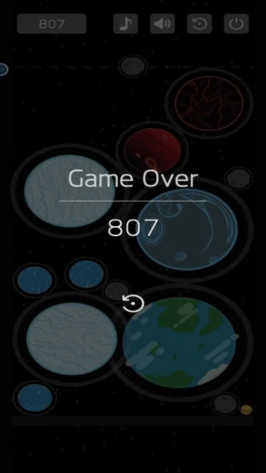 2、滑动屏幕调整下落轨迹,使相同星球碰撞产生融合反应。