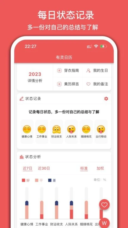 5.心情记录:记录每天心情状态,了解心情变化趋势。
