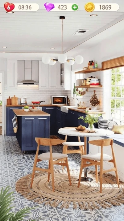 1.通过三消消除获取装修积分,解锁客厅、厨房等房间改造权限。