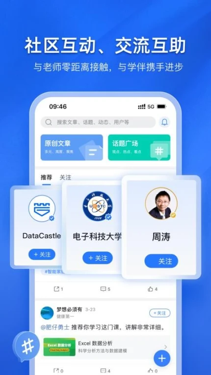 4.社区互动:在线分享有趣帖子,与他人聊天互动,和学者共同进步。
