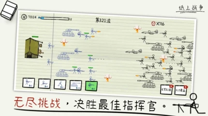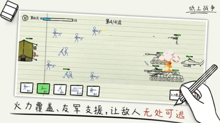 蓝天下载网为您免费提供纸上战争下载。这款休闲对战游戏以纸面战场为核心,玩家可通过绘制武器参与战争。闯关模式与无尽模式带来多样挑战,铅笔绘制的武器能增强军队战斗力。随机抽取截图: