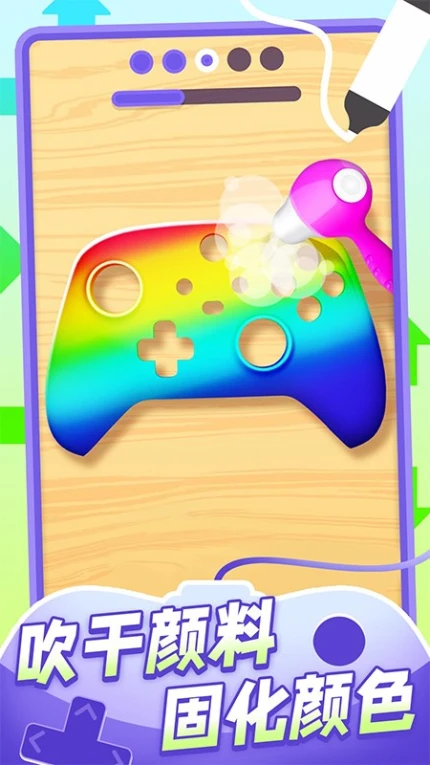 我的手柄超酷是一款融合模拟经营与艺术创作的休闲游戏。玩家将扮演手柄设计师,通过清洗、涂色、喷漆等工序改造手柄外观。系统提供数百种色彩组合与贴纸素材,支持个性化扎染效果,完成订单后可解锁新工具与顾客类型。游戏内设金币系统,用于购买稀有颜料或升级店铺等级,逐步扩展经营规模。