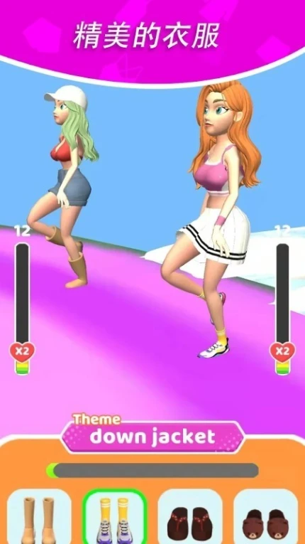蓝天下载网为您免费提供超级走秀时装大战下载。这款以换装为核心的休闲跑酷游戏,将时尚搭配与竞技玩法巧妙融合。玩家需操控女王角色在赛道中完成跑酷挑战,同时根据主题选择服饰搭配,通过高分造型超越对手。游戏中包含多样化的装饰风格与布料主题,玩家需在跑酷过程中保持角色身材,合理利用能量化解障碍,最终赢得观众好评与胜利桂冠。随机截图: