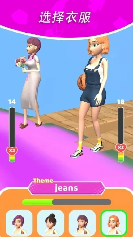 超级走秀时装大战是一款将换装与跑酷结合的创新休闲游戏。玩家通过搭配服饰提升造型分数,在跑酷过程中应对障碍与主题挑战。游戏内含淑女风、甜酷风等多风格服饰,支持布料材质主题关卡设计。玩家需观察赛道服饰预告,提前选择最佳搭配以节省时间,最终以爱心值(观众好评数)决定胜负。游戏强调审美提升与策略搭配,提供直观操作与流畅动作体验。
