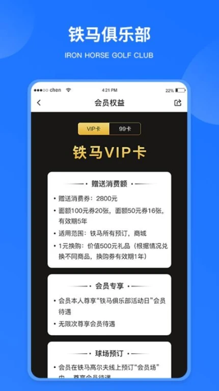铁马高尔夫官网版作为专业高尔夫服务平台,核心功能涵盖智能球场预订、线上商城购物及会员体系管理。用户可基于地理位置筛选球场,查看实时预订状态并在线支付。应用内设旅游套餐与抢购专区,支持订金/全款支付模式,商城提供球具、服饰等全品类商品,顺丰上门取件服务提升售后体验。多维度服务覆盖从场地选择到装备采购的完整运动场景。