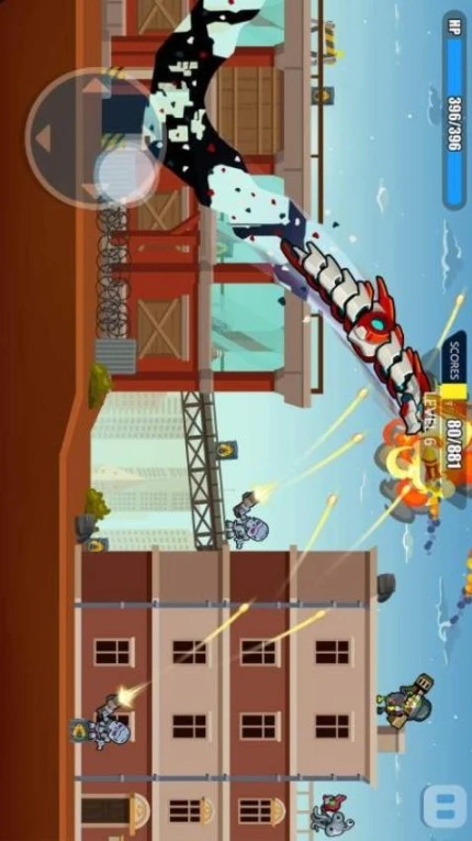 1、用虚拟操纵杆控制龙,利用建筑物庇护反击敌人。