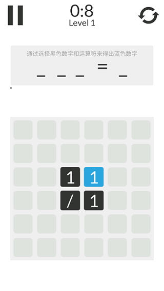 玩家可操控黑色数字和运算符号,通过组合运算得到蓝色数字,增加游戏的自主性。
