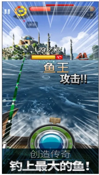 2.游戏机制循序渐进,后期玩法复杂,可挑战更凶猛的鱼,满足玩家的挑战欲。